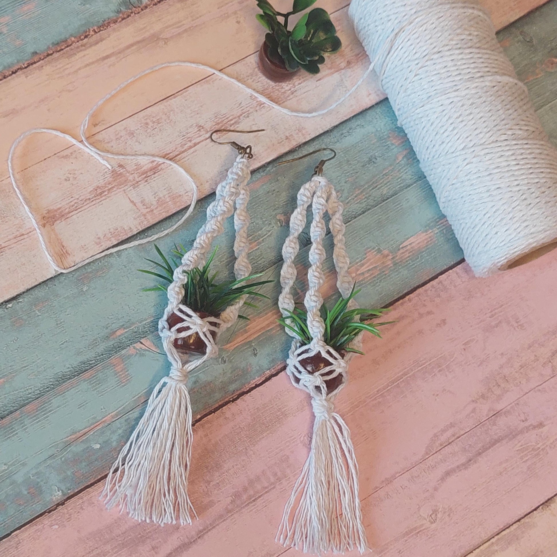Boho-Makramee-Ohrringe mit Mini-Pflanztopf | Handgefertigter Hängeschmuck im Blumentopf-Stil | Einzigartiges Geschenk im Boho-Stil für Sie