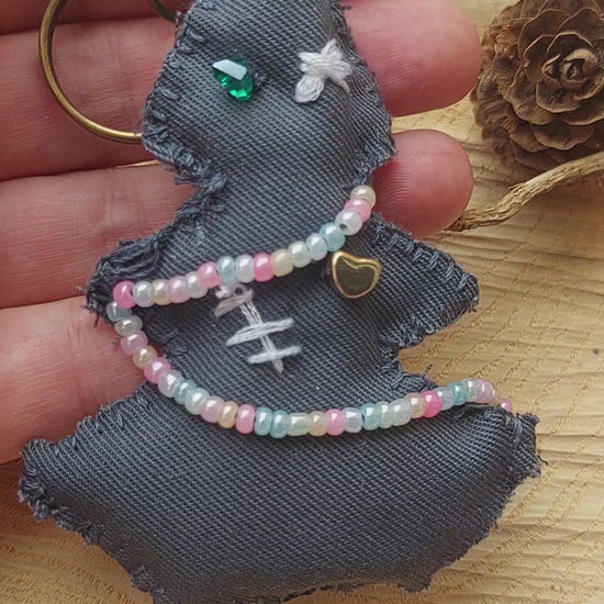 This Alternative Christmas Tree Keychain is more than just a keyring β itβs a tiny gothic-boho plush tree with a playful soul.