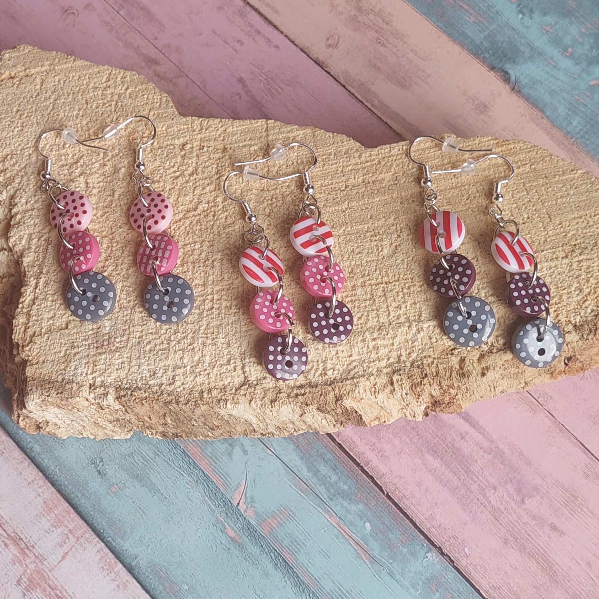 - Materials: Colorful plastic buttons, 925 sterling silver hooks