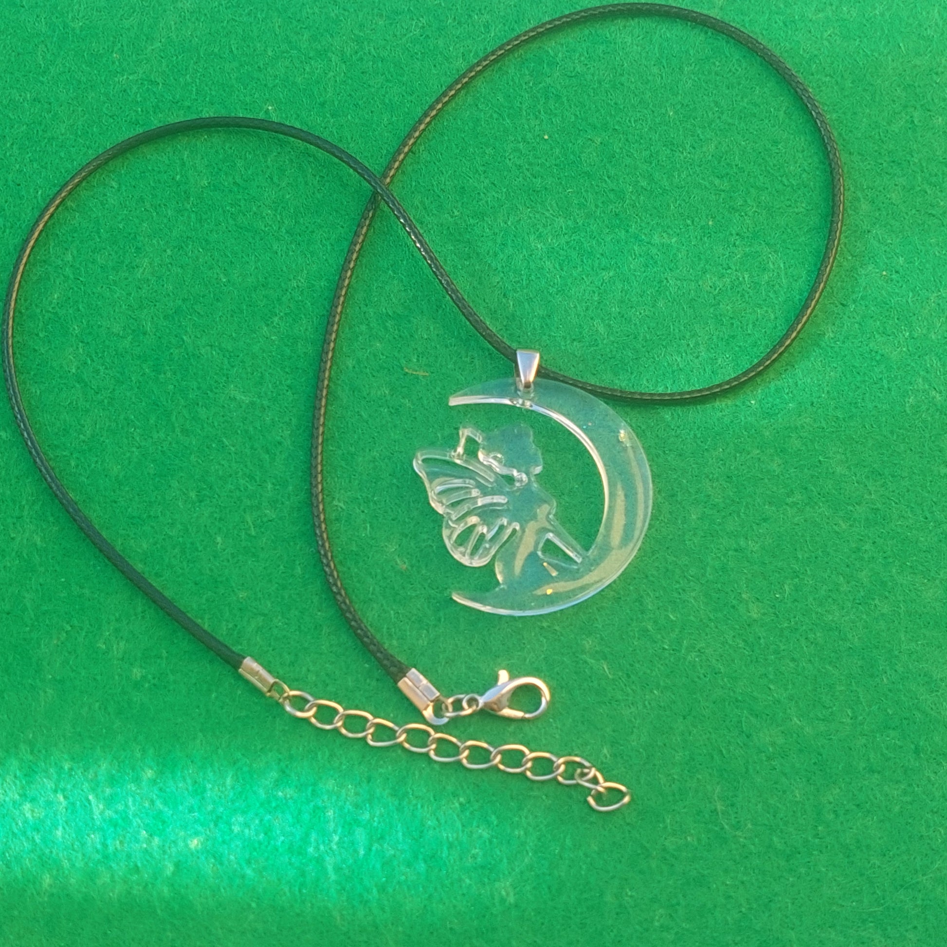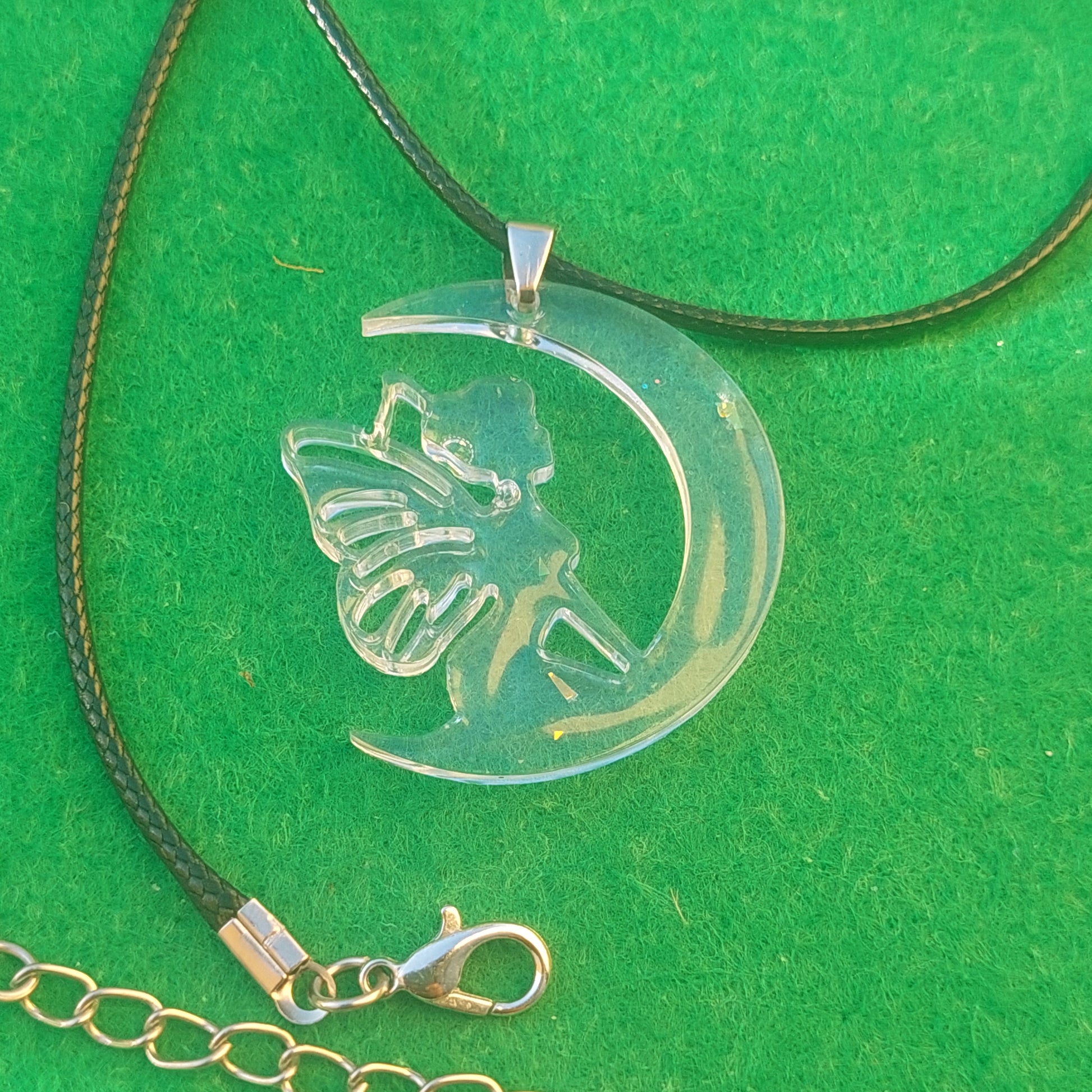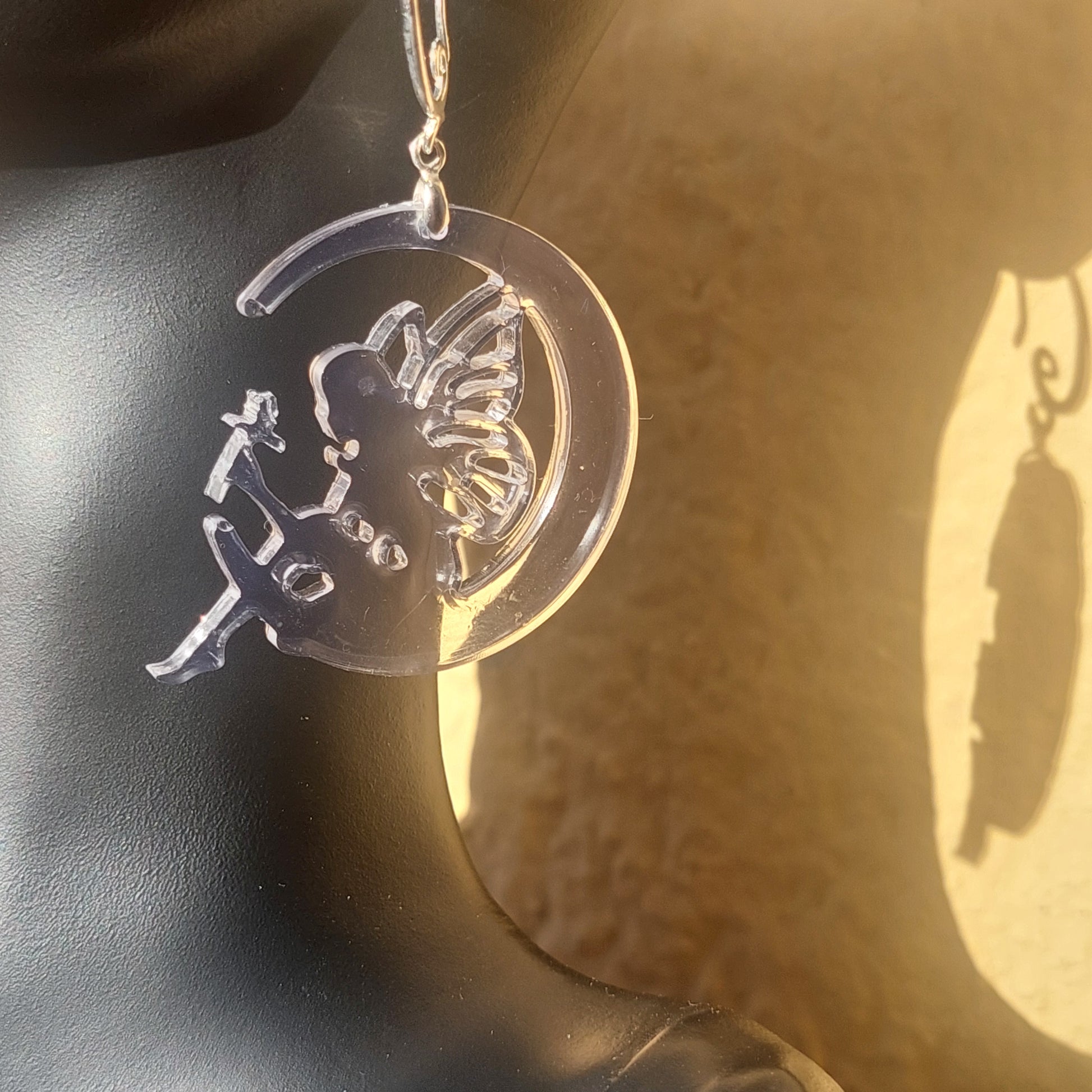 Crafted with love, each pair features delicate fairy silhouettes dancing on crescent moons, captured in transparent resin with sparkling accents. Asymmetrical, lightweight, and comfortable – perfect for everyday magic or special occasions.