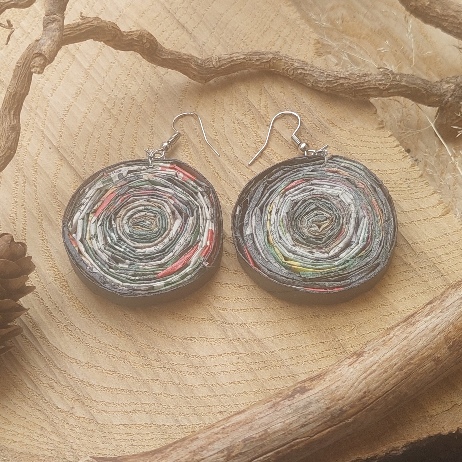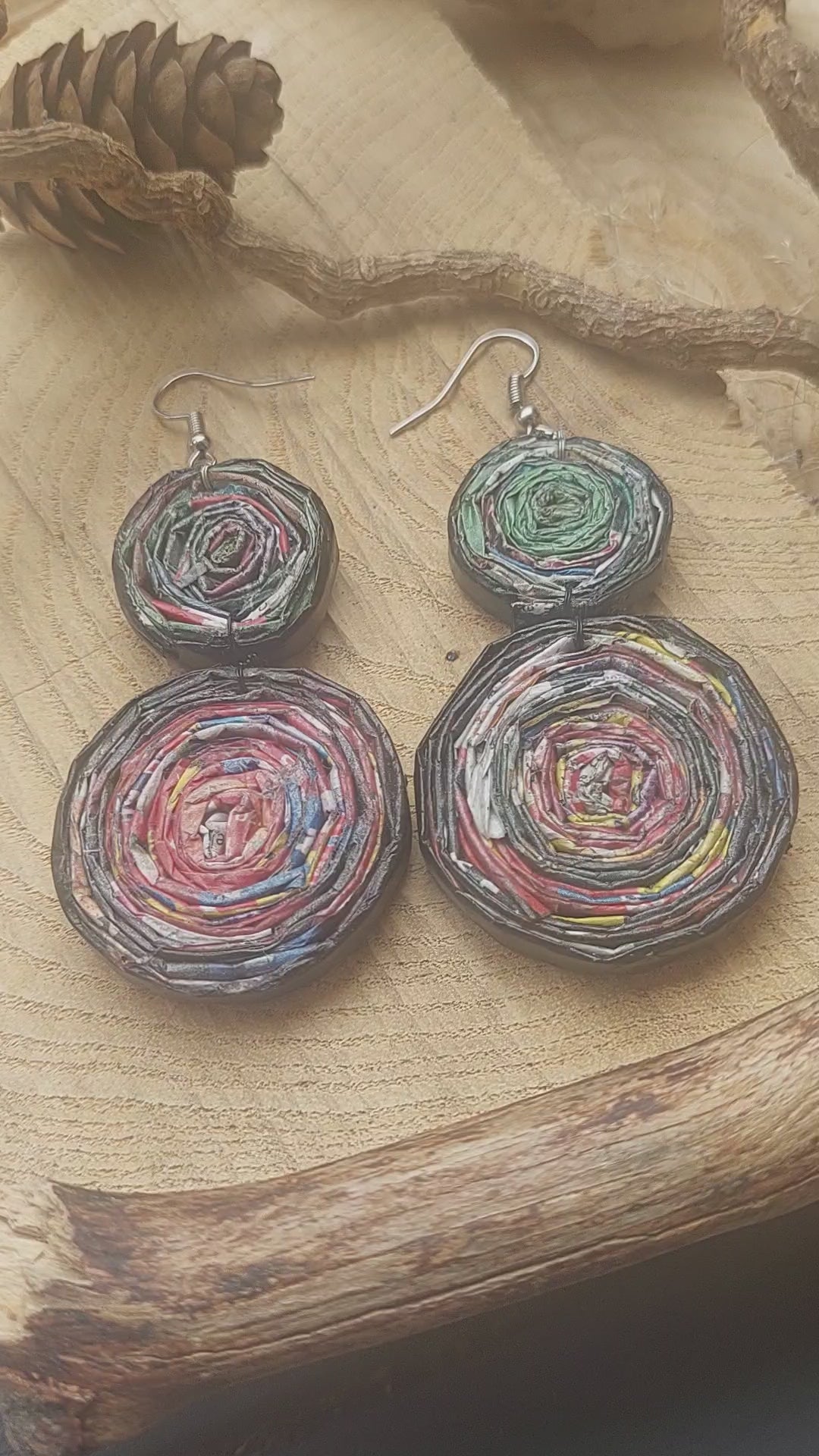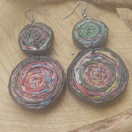 Upcycled Paper Statement Earrings - Eco-Friendly Handmade Jewelry - Unique Gift