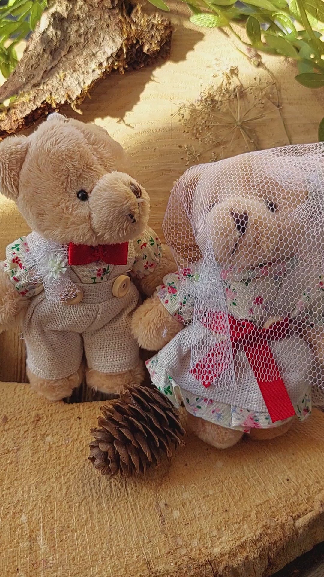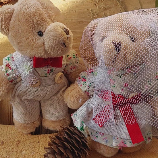 These adorable teddy bears and bunnies stand 12 cm tall and wear charming handmade wedding outfits, complete with tiny red bows, floral dresses, and delicate soft veils. Each plush pair symbolizes love, unity, and togetherness – the perfect keepsake for weddings, anniversaries, or just to show someone you care.